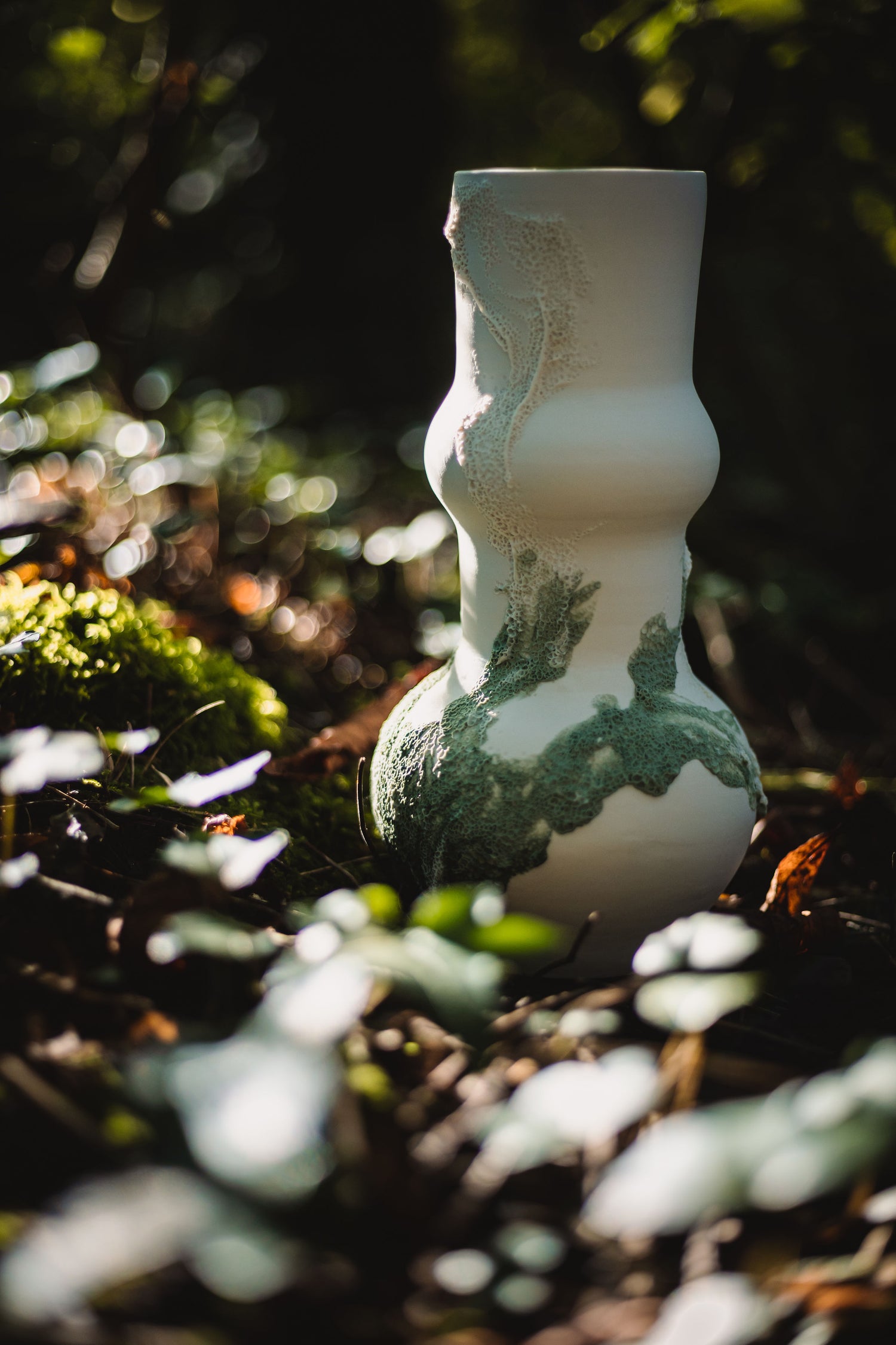 La collection Corail est née d’un regard attentif porté sur les formes que la nature compose au fil du temps. Des textures minérales aux spirales végétales, tout s’entrelace et s’invite sur mes surfaces en porcelaine et en grès. La mousse recouvre, le corail s’enroule, les éléments se déposent et se réinventent : la nature envahit sans détruire, transforme sans effacer. Dans chaque pièce, je cherche à figer ce dialogue entre matière, temps et beauté du vivant, fragile et éternel à la fois.
